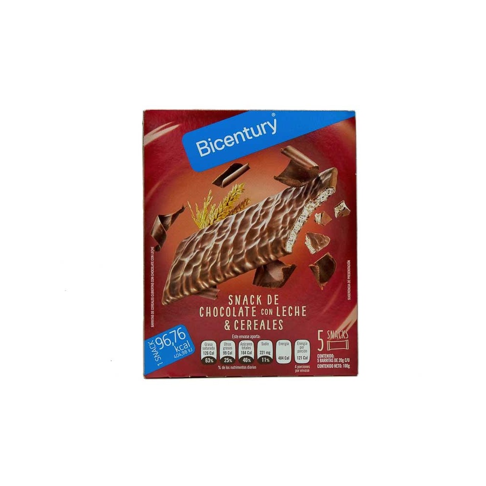 BARRITAS DE CEREALES BAÑADAS EN CHOCOLATE CON LECHE 5 UNIDADES BICENTURY