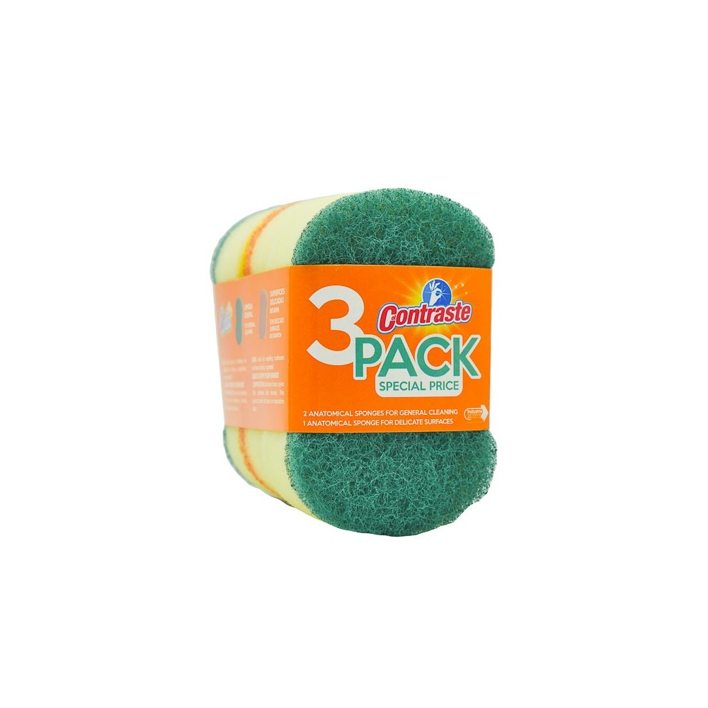 2 ESPONJAS LIMPIEZA GENERAL + 1 ESPONJA SUPERFICIES DELICADAS CONTRASTE