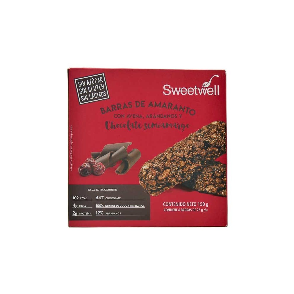 BARRA AMARANTO AVENA, ARANDANOS Y CHOCOLATE SEMIAMARGO 150G SWEETWELL
