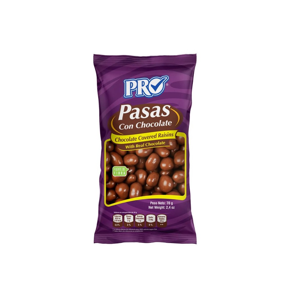PASAS CON CHOCOLATE 70G PRO