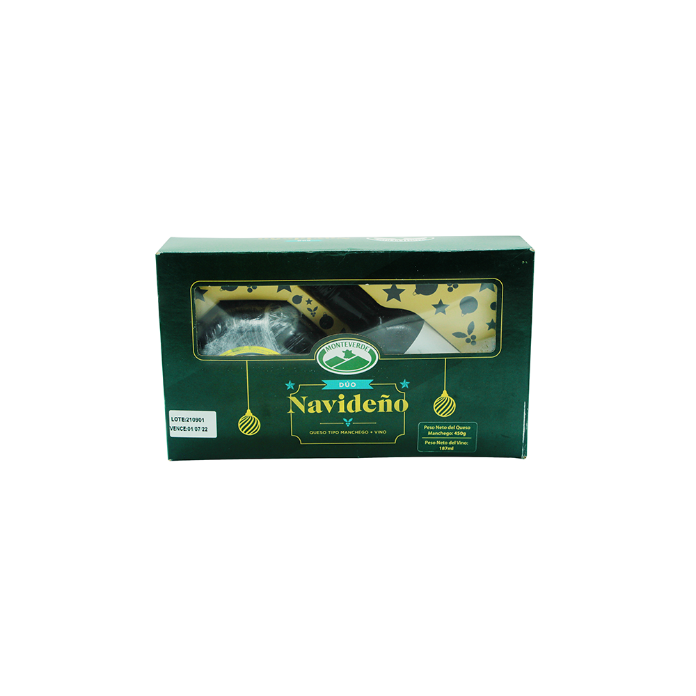 PACK DE QUESO MONTE VERDE MANCH + VINO 637G NAVIDAD